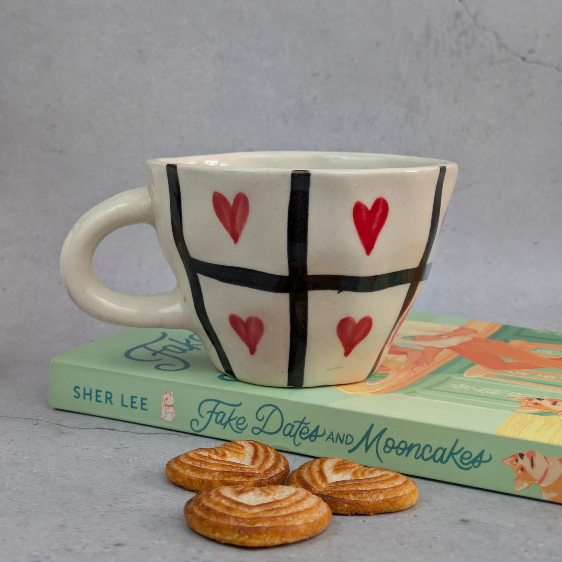 This mug says I wear my heart in every square. A bold black grid wraps around this quirky ceramic cup, with vibrant red hearts nestled inside each blockāgiving you a pop-art kind of love thatās anything but subtle. Perfect for latte lovers with a thing for statement pieces.